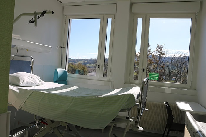 - un secteur d’hospitalisation (suites-de-couche et grossesses pathologiques) situé au 2ème étage du CHSP, qui se compose de 7 lits dont 5 en chambre individuelle et deux en chambre double. Ce secteur fait face au secteur de naissances et se situe à proximité immédiate du bloc opératoire.